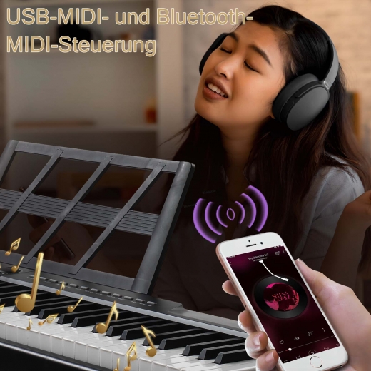 【Duale bluetooth-funktion】: Dieses e-piano verfügt über bluetooth-audio und bluetooth-midi und kann zur multimedia-interaktion über ein usb-kabel mit einem computer oder tablet verbunden werden